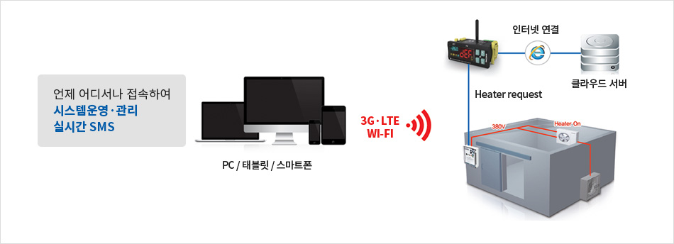 스마트기기(pc/폰/태블릿)를 이용하여 원격으로 컨트롤 하며, 이동/확장성이 용이합니다.